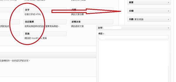 然後可以在模組的地方發現增加一個 文字選項可以添加任何文字或html